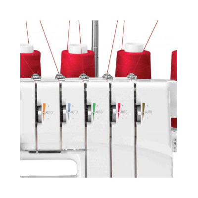 5 filiTaglia cuci con doppio punto di coperturaTrasporto differenzialeTensioni pre-regolateRegolazione larghezza punti14 punti